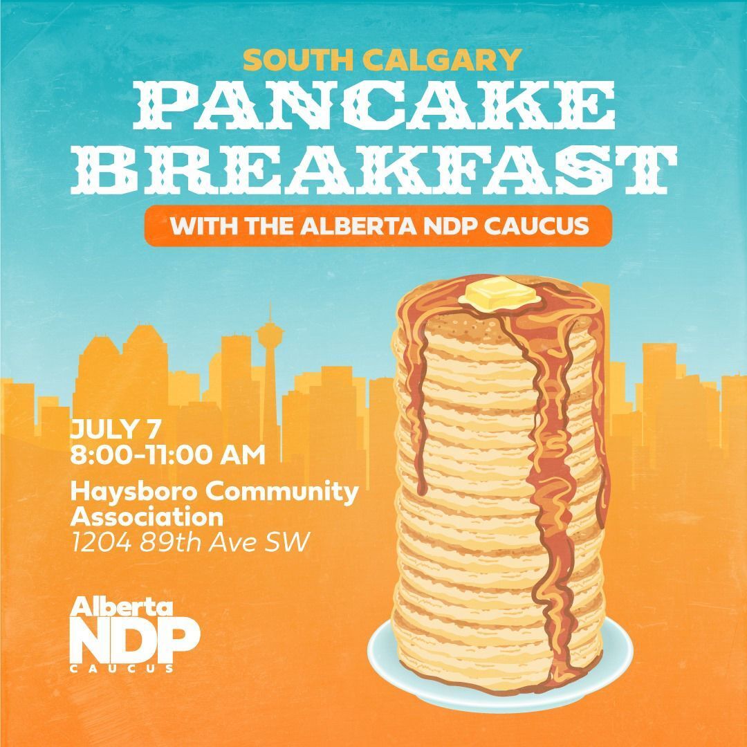 Join us on July 7 from 8:00 - 11:00 AM for the best breakfast in town! Meet local NDP MLAs and our new leader Naheed Nenshi at the Haysboro Community Association! 1204 89 Ave SW